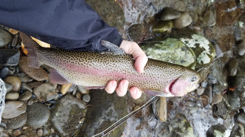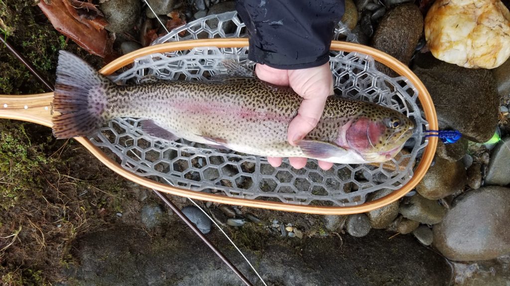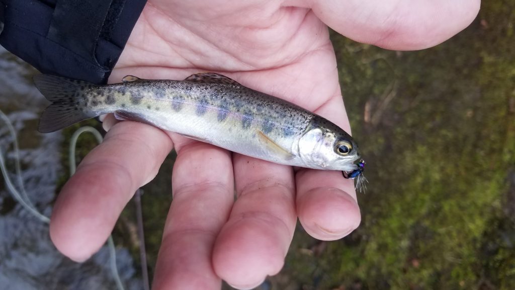 Drove up to the hatchery, and was pleased to see there was no one parked in the spot that I’ve had great luck at. I rigged up a double nymph rig with a prince charming with lively legz on the bottom, and a deadpool midge up top. The spot did not disappoint. There is a nice depression that the fish love to hang out in, and I was able to hook about six fish on the prince charming, and one on the deadpool.